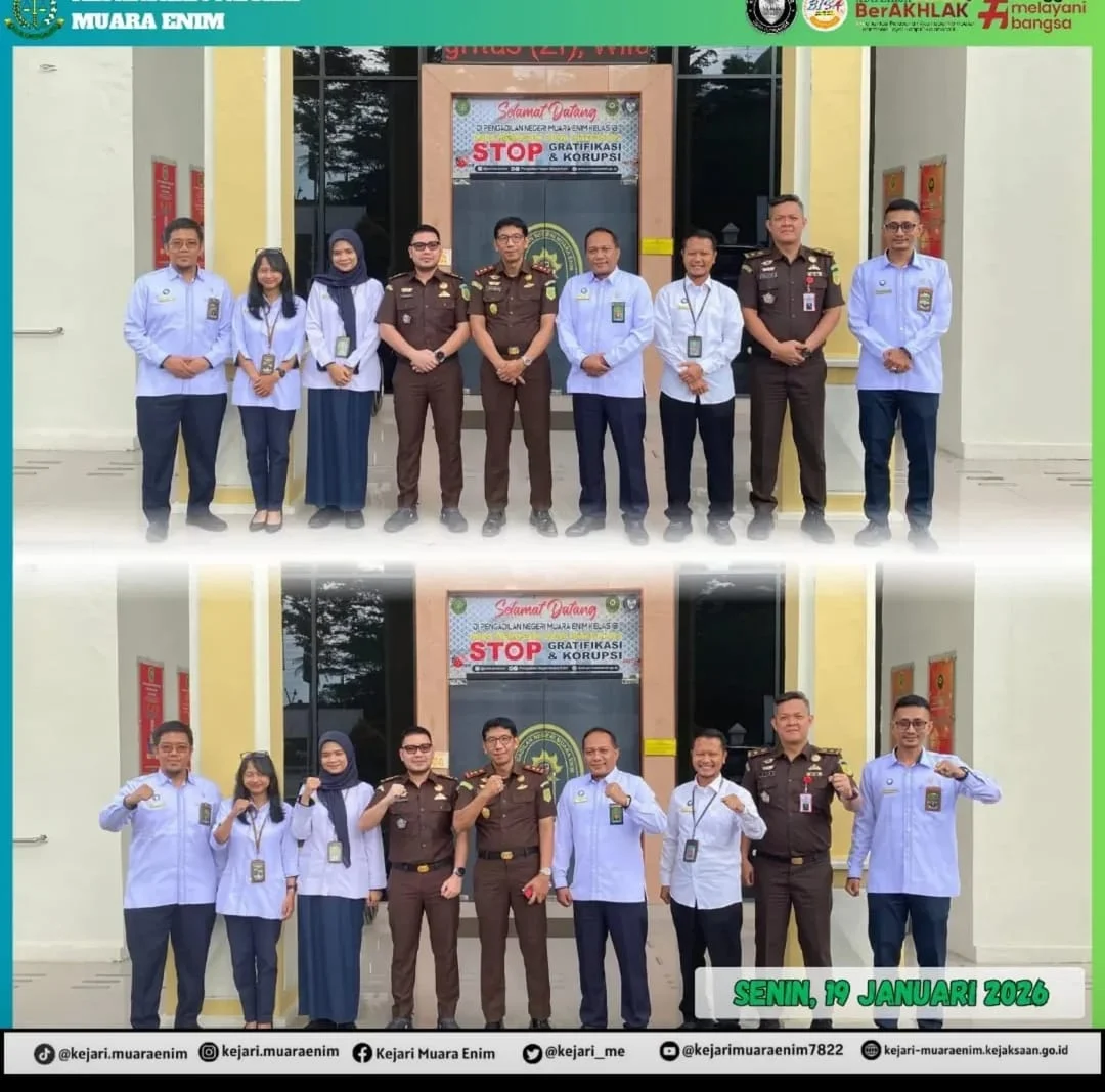 Silaturahmi Kepala Kejaksaan Negeri Muara Enim yang baru dengan Ketua Pengadilan Negeri Kabupaten Muara Enim telah dilaksanakan kegiatan silaturahmi Kepala Kejaksaan Negeri Muara Enim yang baru dengan Ketua Pengadilan Negeri Kabupaten Muara Enim. Kegiatan tersebut dilaksanakan sebagai bentuk perkenalan sekaligus upaya mempererat hubungan kerja dan sinergitas antara Kejaksaan Negeri dengan Pemerintah Kabupaten dalam rangka mendukung penyelenggaraan pemerintahan, pembangunan daerah, serta pelayanan publik yang taat hukum.