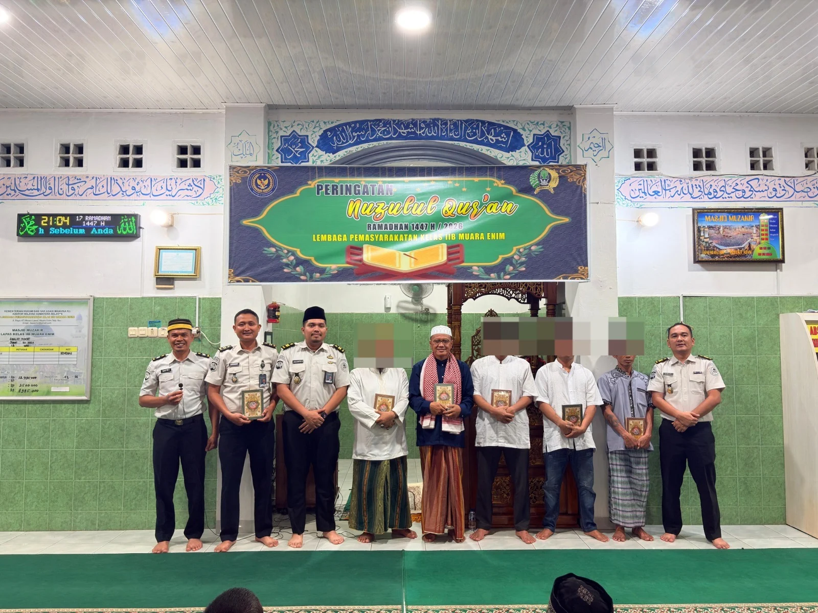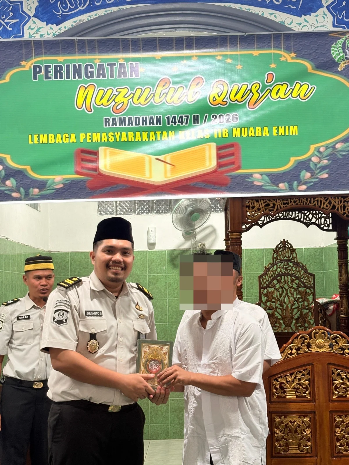 MUARA ENIM – Lembaga Pemasyarakatan (Lapas) Kelas IIB Muara Enim terus berkomitmen meningkatkan kualitas pembinaan kepribadian bagi Warga Binaan Pemasyarakatan (WBP). Hal ini dibuktikan dengan digelarnya kegiatan Zunul Qur’an yang dirangkaikan dengan pembagian fasilitas ibadah berupa kitab suci Al-Qur’an di Masjid Muzakir Lapas Muara Enim. (6/03/2026)