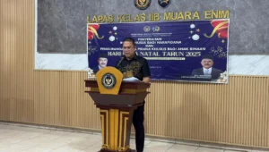 Muara Enim — Dalam rangka memperingati Hari Raya Natal Tahun 2025, Lembaga Pemasyarakatan Kelas IIB Muara Enim melaksanakan kegiatan penyerahan Remisi Khusus bagi Narapidana serta Pengurangan Masa Pidana Khusus bagi Anak Binaan, Kamis (25/12).