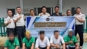 Muara Enim — Dalam rangka menyambut datangnya Bulan Suci Ramadhan, Lembaga Pemasyarakatan Kelas IIB Muara Enim melaksanakan kegiatan kerja bakti yang melibatkan Pejabat Struktural maupun warga binaan, Senin 16/02