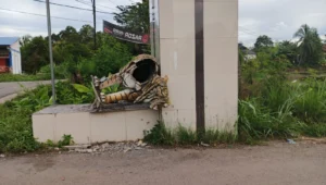Muara Enim — Tugu Harimau yang berada di Simpang Jawi, Desa Ujan Mas Lama, Kecamatan Ujan Mas, Kabupaten Muara Enim, tersenggol sebuah mobil pada [waktu kejadian belum diketahui]. Akibat insiden tersebut, tugu yang memiliki nilai sejarah dan menjadi ikon daerah mengalami kerusakan.